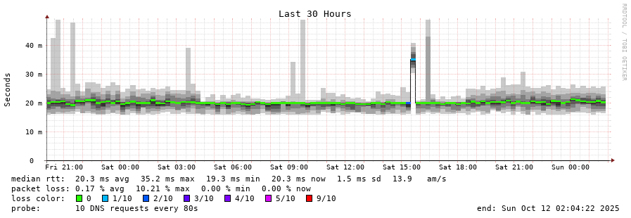 traceroute to 2620:fe::fe (2620:fe::fe), 30 hops max, 80 byte packets - Generated at 2025-10-12 00:15:01