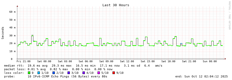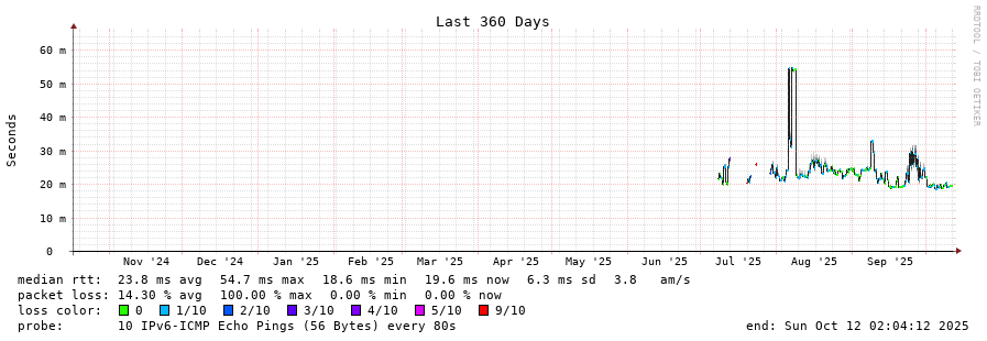 traceroute to www.akamai.com (2a02:26f0:980:16::210:3612), 30 hops max, 80 byte packets - Generated at 2025-10-12 00:15:01