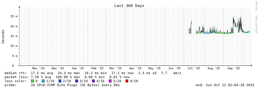 traceroute to dualstack.nonssl.global.fastly.net (2a04:4e42:45::204), 30 hops max, 80 byte packets - Generated at 2025-10-12 00:15:01