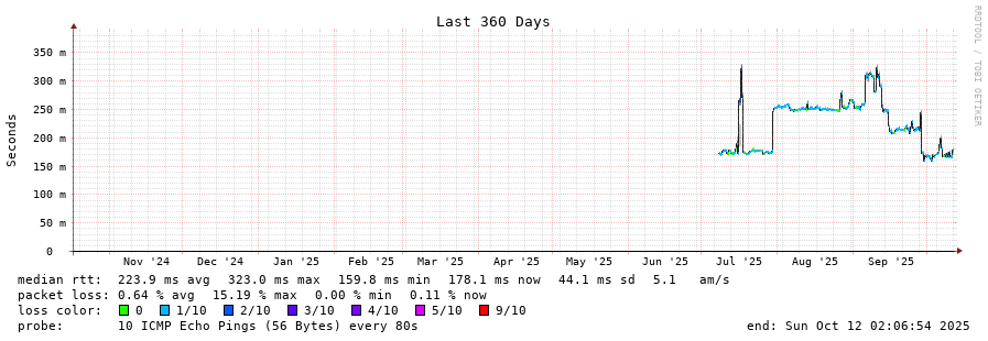 traceroute to 180.179.44.1 (180.179.44.1), 30 hops max, 60 byte packets - Generated at 2025-10-12 00:00:01