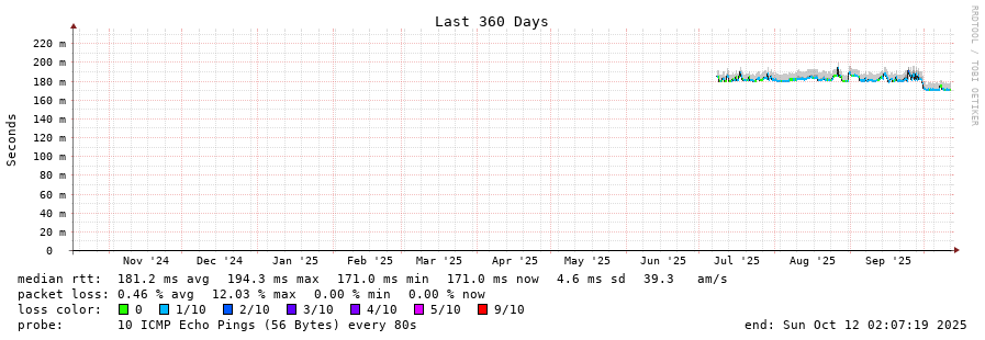 traceroute to 210.193.2.36 (210.193.2.36), 30 hops max, 60 byte packets - Generated at 2025-10-12 00:00:01