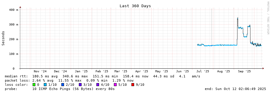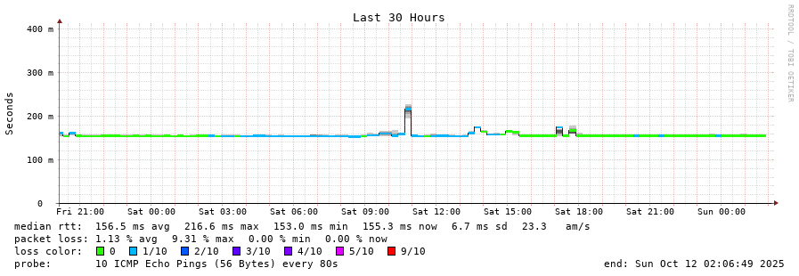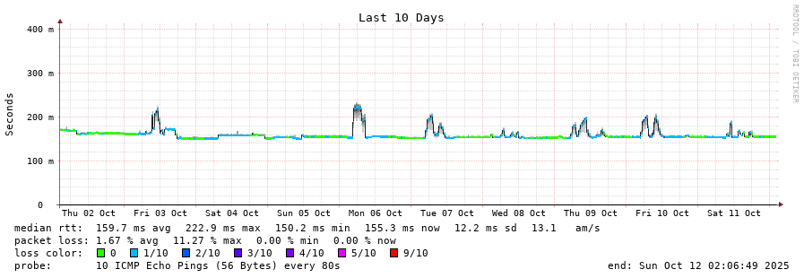 traceroute to 122.160.40.1 (122.160.40.1), 30 hops max, 60 byte packets - Generated at 2025-10-12 00:00:01