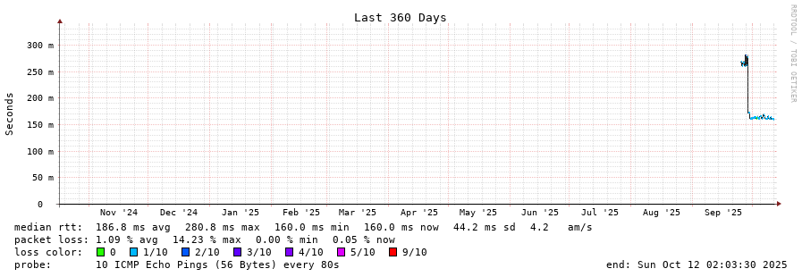 traceroute to 1.22.229.1 (1.22.229.1), 30 hops max, 60 byte packets - Generated at 2025-10-12 00:00:01