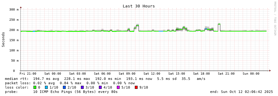 traceroute to 175.176.168.1 (175.176.168.1), 30 hops max, 60 byte packets - Generated at 2025-10-12 00:00:01