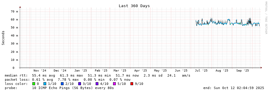 traceroute to 77.173.205.1 (77.173.205.1), 30 hops max, 60 byte packets - Generated at 2025-10-12 00:00:01