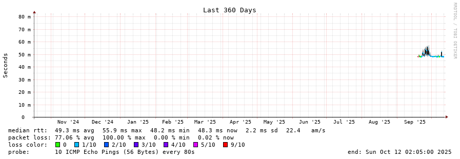 traceroute to 2.58.192.1 (2.58.192.1), 30 hops max, 60 byte packets - Generated at 2025-10-12 00:00:01