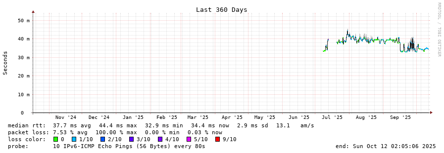 traceroute to 2a05:9f04:16:10::65 (2a05:9f04:16:10::65), 30 hops max, 80 byte packets - Generated at 2025-10-12 00:00:01