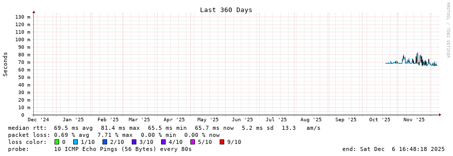 traceroute to 85.114.46.237 (85.114.46.237), 30 hops max, 60 byte packets - Generated at 2025-12-06 16:30:01