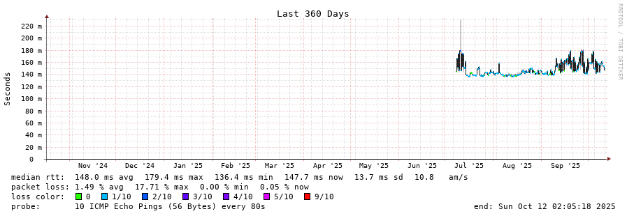 traceroute to 158.46.224.3 (158.46.224.3), 30 hops max, 60 byte packets - Generated at 2025-10-12 00:00:01