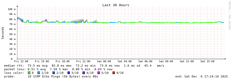 15 > 77.81.178.106.banat-net.ro (77.81.178.106) [AS49774] 73.117ms 73.124ms 73.128ms