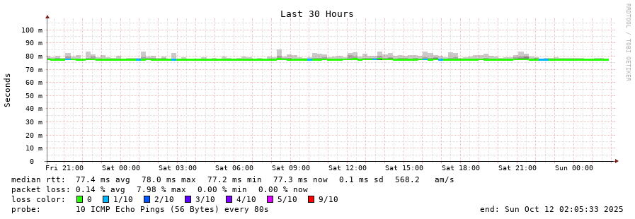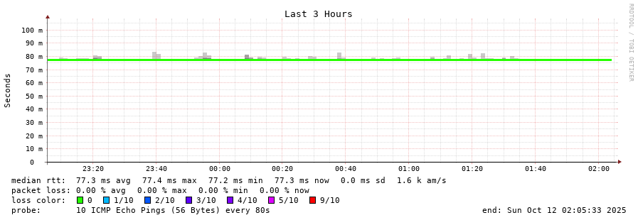 14 > 86.107.193.1 (86.107.193.1) [AS203346] 77.561ms 77.313ms 77.397ms