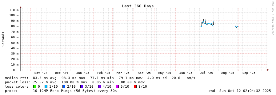 11 > 95.158.152.67 (95.158.152.67) [AS41313] 78.111ms 76.832ms 76.879ms