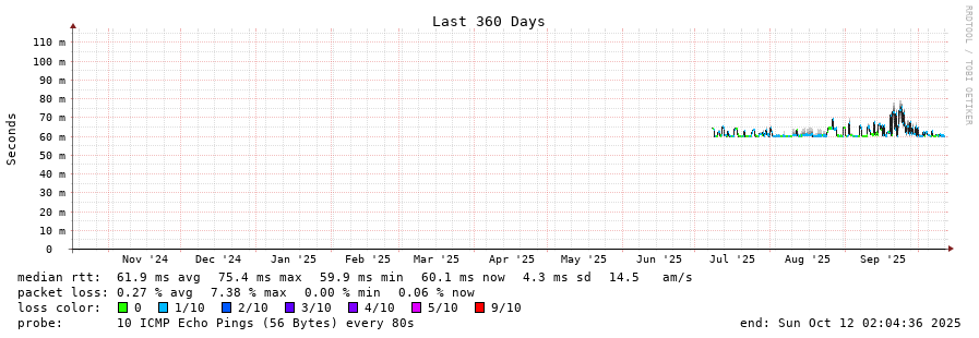 traceroute to 95.168.195.129 (95.168.195.129), 30 hops max, 60 byte packets - Generated at 2025-10-12 00:00:01