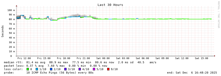 traceroute to 86.107.73.26 (86.107.73.26), 30 hops max, 60 byte packets - Generated at 2025-12-06 16:30:01