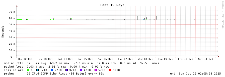 11 > 2a00:c561::4 (2a00:c561::4) [AS62416] 58.207ms 58.209ms 61.740ms