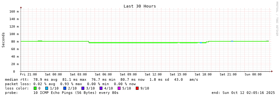 14 > rcsrds01.ring.nlnog.net (82.76.255.222) [AS8708] 80.746ms 80.637ms 80.684ms