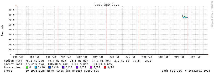 traceroute to 2a02:2f05:2113:7f00:220:4aff:fee0:220f (2a02:2f05:2113:7f00:220:4aff:fee0:220f), 30 hops max, 80 byte packets - Generated at 2025-12-06 16:45:01