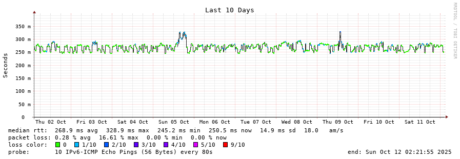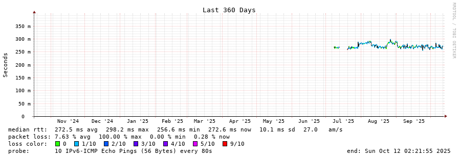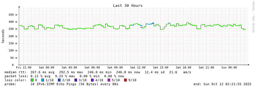 traceroute to 2402:1f00:8002:100::f72 (2402:1f00:8002:100::f72), 30 hops max, 80 byte packets - Generated at 2025-10-12 02:15:01