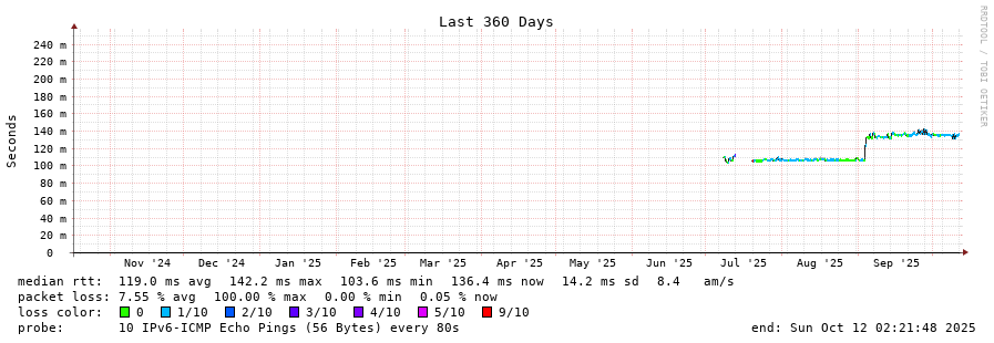 traceroute to 2604:2dc0:101:100::197c (2604:2dc0:101:100::197c), 30 hops max, 80 byte packets - Generated at 2025-10-12 02:15:01