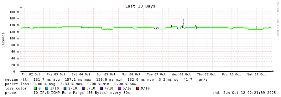 23 > yto1-yyz01.smokeping.ovh.net (2607:5300:300:1f00::) [AS16276] 132.208ms 132.094ms 132.163ms