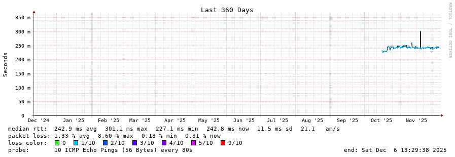 25 > 167.249.74.18 (167.249.74.18) [AS11835] 245.665ms 245.453ms 245.461ms