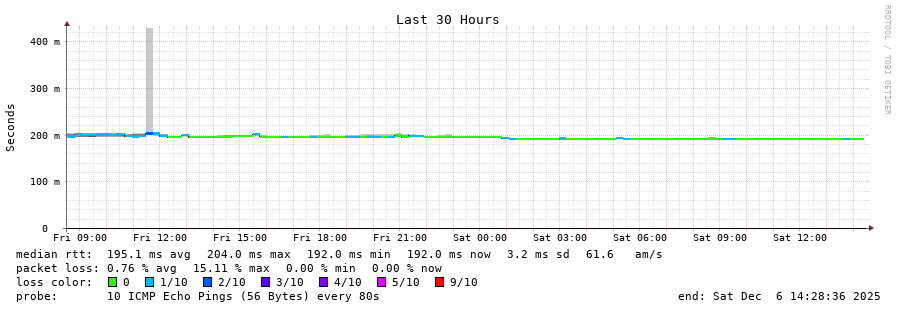 traceroute to 190.24.15.166 (190.24.15.166), 30 hops max, 60 byte packets - Generated at 2025-12-06 14:15:01
