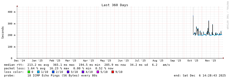 10 > 213.144.185.67 (213.144.185.67) [AS6762] 198.958ms 198.940ms 198.838ms
