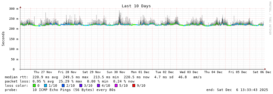 9 > 5.178.43.189 (5.178.43.189) [AS6762] 201.082ms 201.054ms 201.094ms