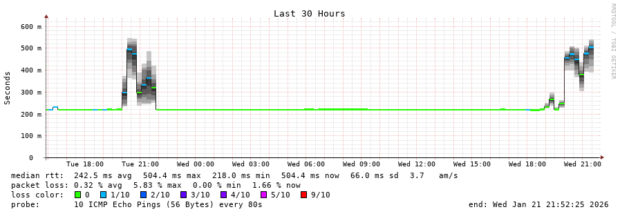 traceroute to 190.9.83.244 (190.9.83.244), 30 hops max, 60 byte packets - Generated at 2026-01-21 21:30:01