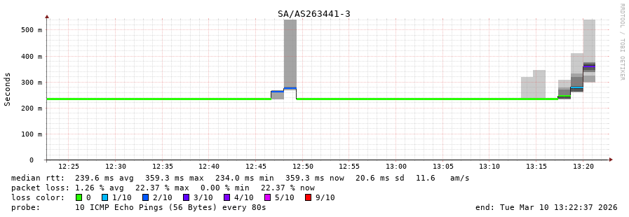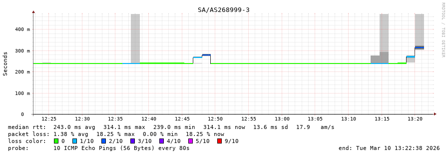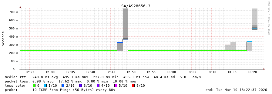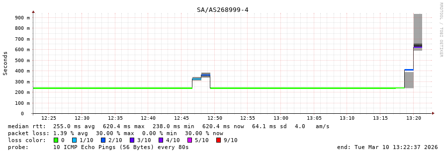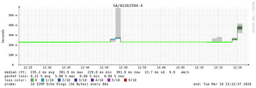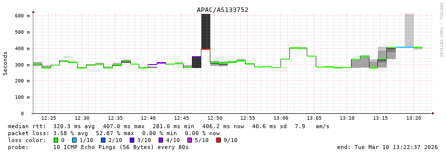 40. Median RTT 0.307 seconds