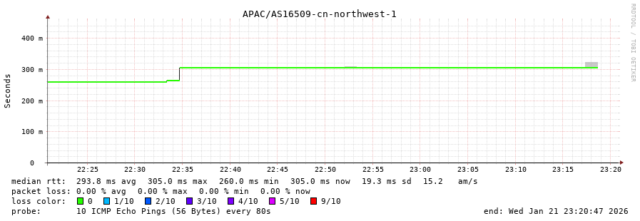 30. Median RTT 0.307 seconds