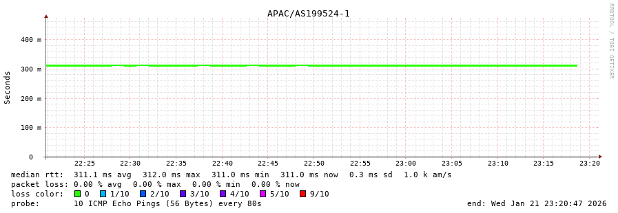 22. Median RTT 0.323 seconds
