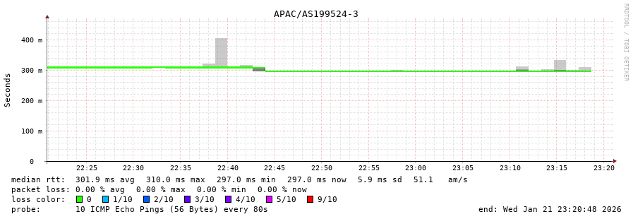 21. Median RTT 0.324 seconds