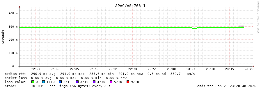 45. Median RTT 0.293 seconds