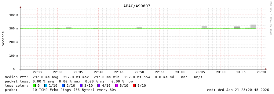 41. Median RTT 0.297 seconds
