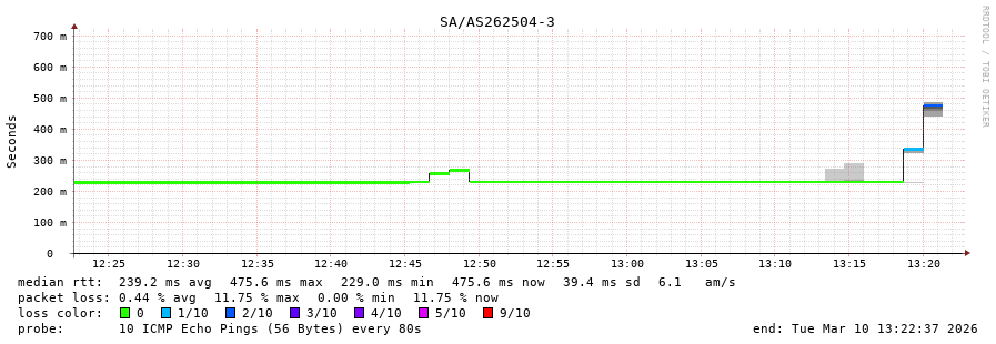 43. Median RTT 0.303 seconds